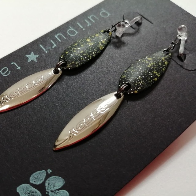 釣り具のルアーやスプーンを日常に♪ 動く度キラキラと可愛く揺れるルアー 角度によって模様や色の見方が変わって綺麗☆ 水中の魚にアプローチする為 より華やかに より優雅に より個性的に 日々改良を重ねられている美しいルアー 魚の為だけなんて勿体ない! ノンホール仕様ですが ピアス・イヤリングに変更可能 ご希望の方はご連絡ください